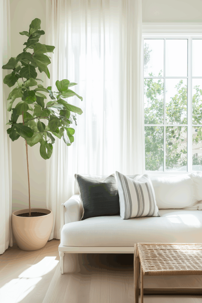 Lighter tones like beige, gray, or ivory make small spaces feel open and airy. Add texture — like linen, boucle, or subtle tweed — to keep it from feeling flat.
