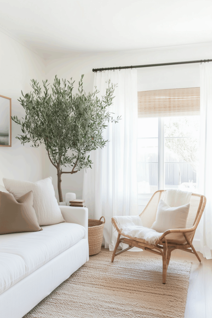 Add interest with texture instead of color — like boucle pillows or a chunky knit throw. The result feels peaceful and timeless, not bland.