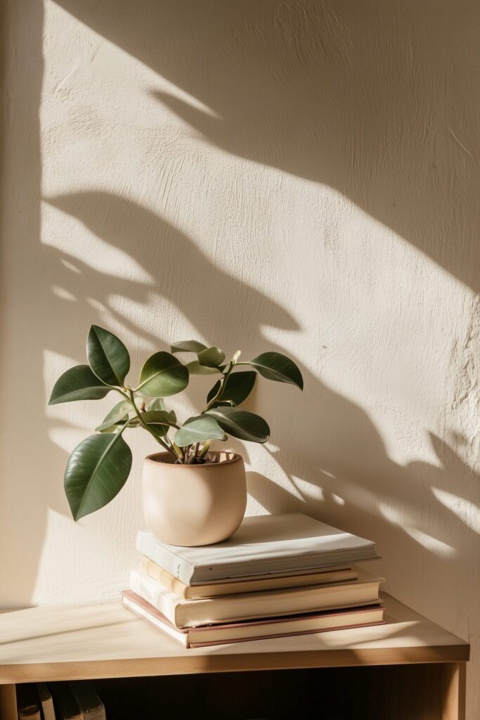 - Baby rubber plant: Compact; forgiving watering; shelves and tabletops.