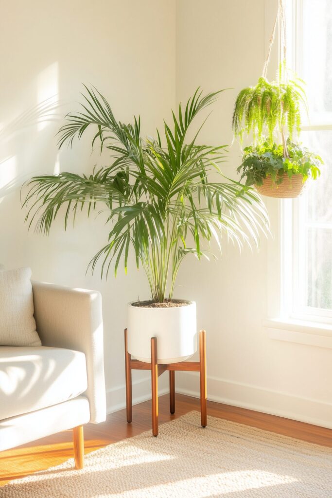 - Bamboo palm: Narrow footprint; medium light; corner-friendly.