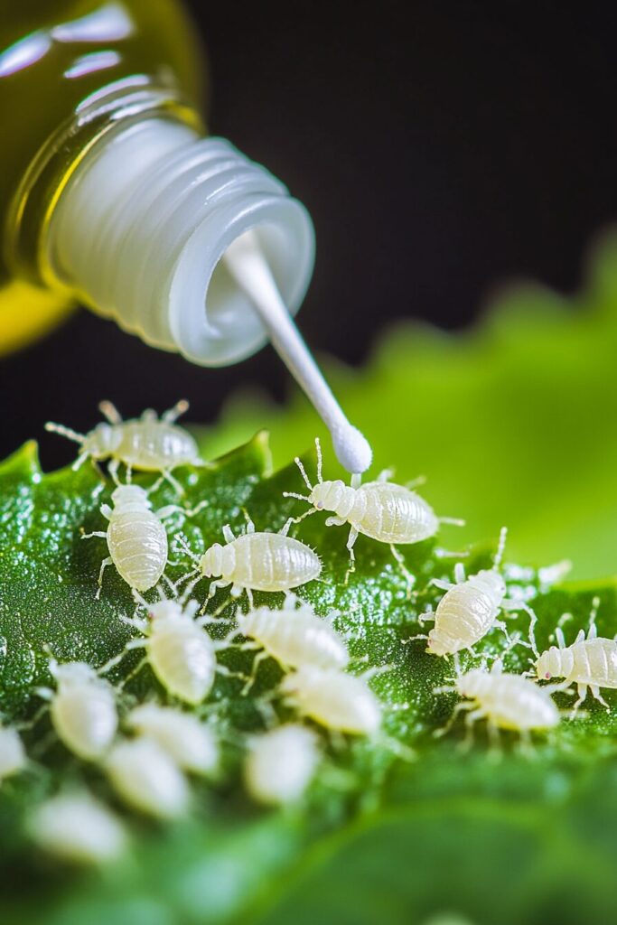 - Treat the crevices of the plant with a cotton swab dipped in 70% isopropyl alcohol.