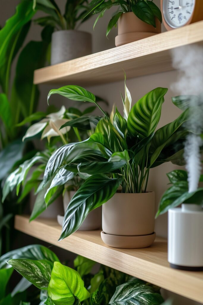 Most calatheas want 50–60% humidity to avoid crispy edges. Group plants, move away from vents, and run a small humidifier nearby.