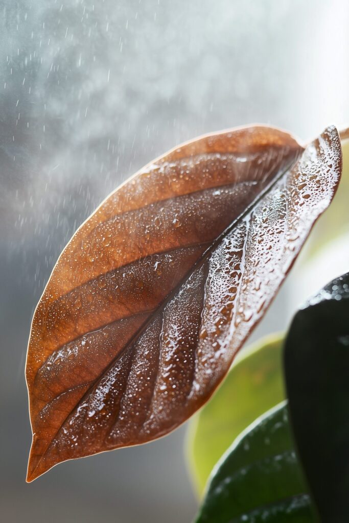 What it means: Low humidity, underwatering between big gulps, fertilizer salts, or hard water minerals. Peace lilies, calatheas, and fiddle leaf figs are drama-prone here.