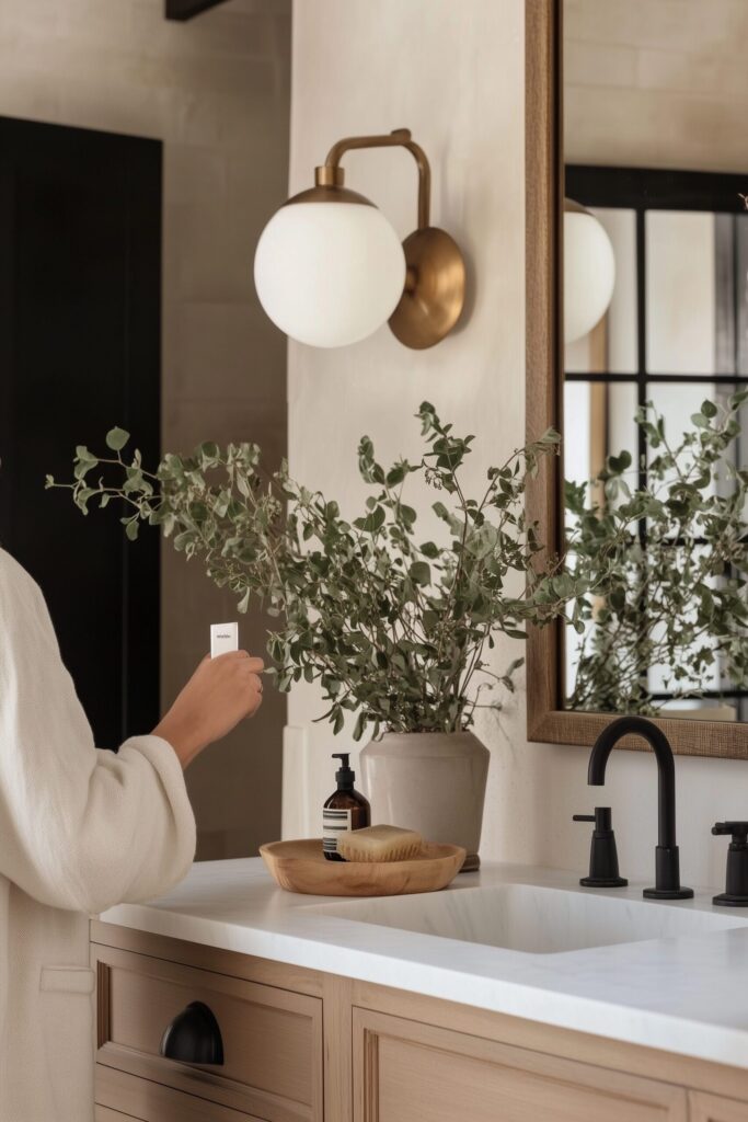 - Globe sconces: Chic and minimal; pair beautifully with round or oval mirrors.
