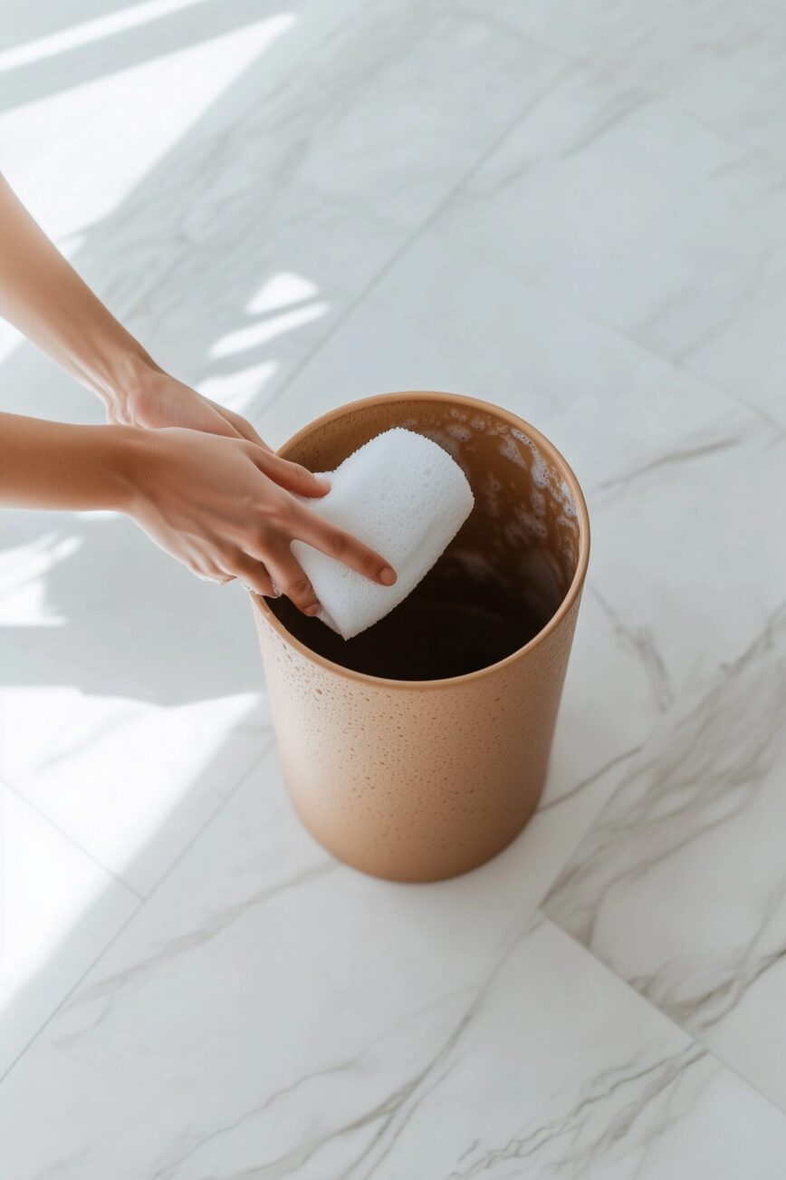No matter what tricks you use, cleaning your trash can is non-negotiable. Even if you use liners, odors can soak into the plastic or metal itself. Here’s a simple cleaning routine that works wonders:
