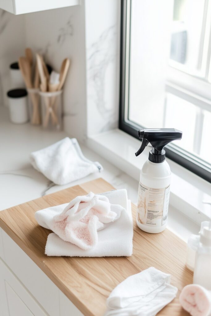 • White vinegar spray: Use it as a disinfectant and deodorizer. It cuts bacteria and neutralizes tough odor compounds.