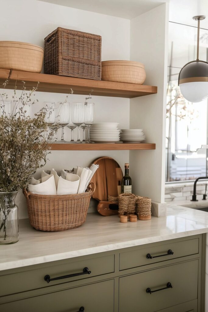 How to Style a Kitchen Hutch: Shelving, Bins, and Glassware