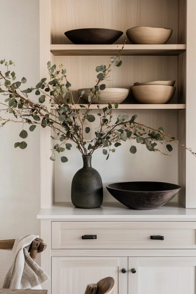 Start by grouping similar items—stacked bowls together, mugs in rows, glassware sorted by type. Then, vary the heights using wooden risers or plate stands like wooden plate stands. This little elevation game gives your pieces dimension and avoids that overcrowded look.