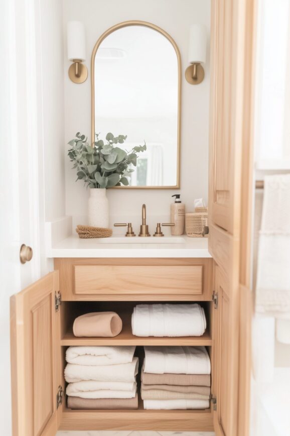 If you’ve ever stepped into a small bathroom and attempted to figure out where to set your toothbrush and soap, let alone all your skincare, you are not alone. Tiny bathrooms can feel frustrating, not to mention, there is something supremely frustrating about wanting that organized, spa-like space, but have a square footage barely big…