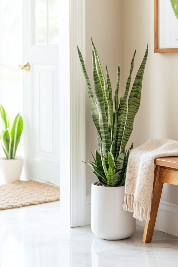 - Sansevieria ‘Moonshine’ – pale, silvery-green leaves that brighten in indirect light.