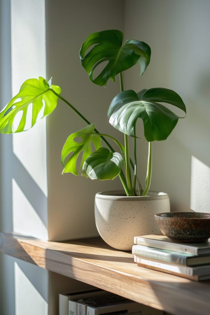 Window “stage”: place monster plant on the windowsill or a window bench with a short clear acrylic riser. Barrier for pets, drama for humans.